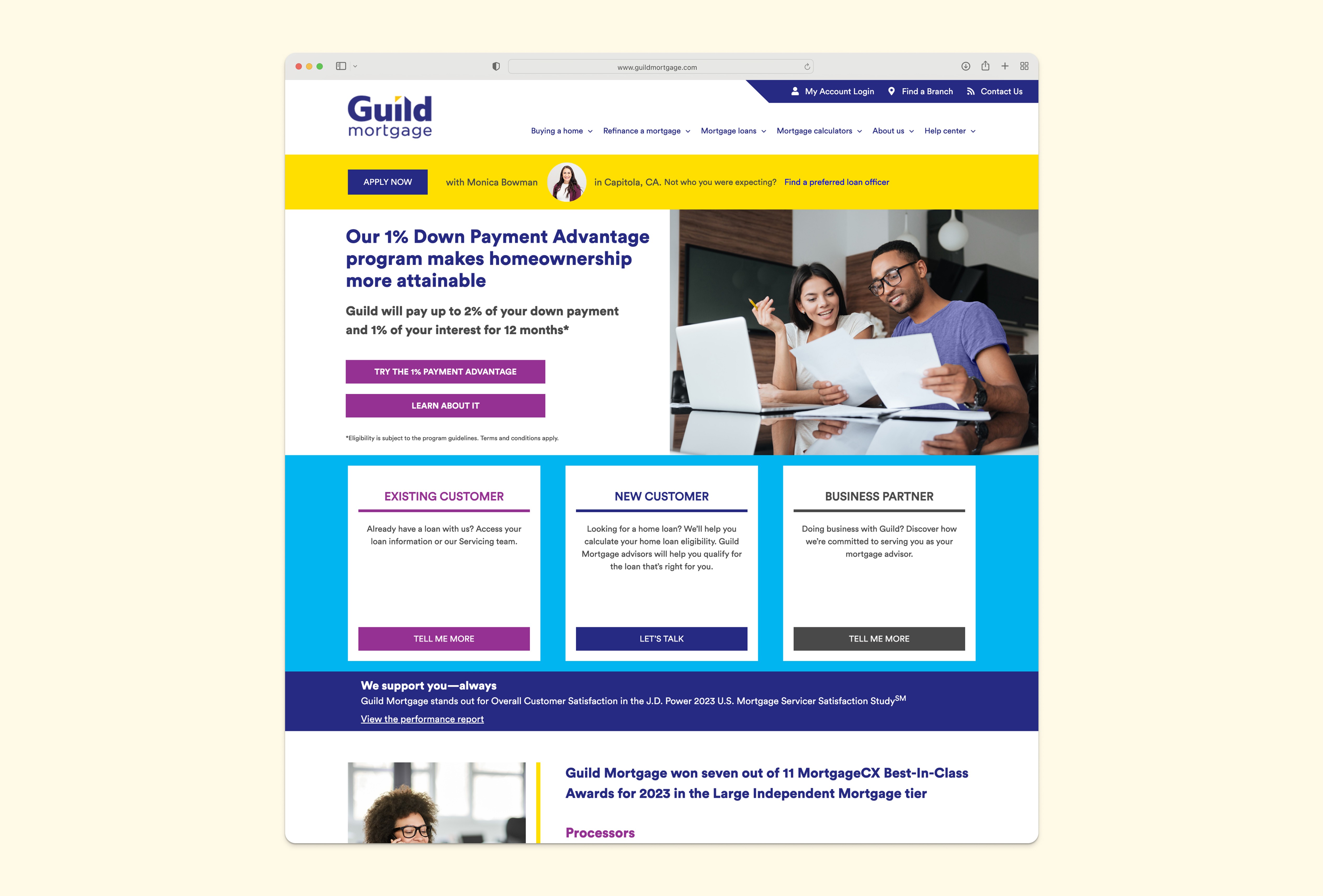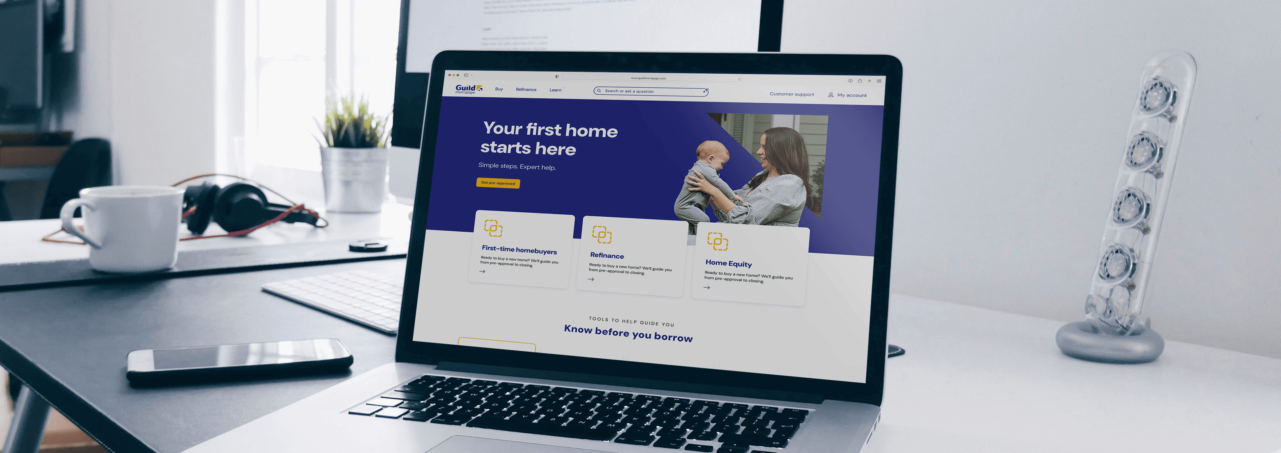 Guild Mortgage is a mortgage lending company that focuses on putting people first. This project was designed for two main groups: potential homebuyers looking for a loan and existing customers who need to manage their accounts.