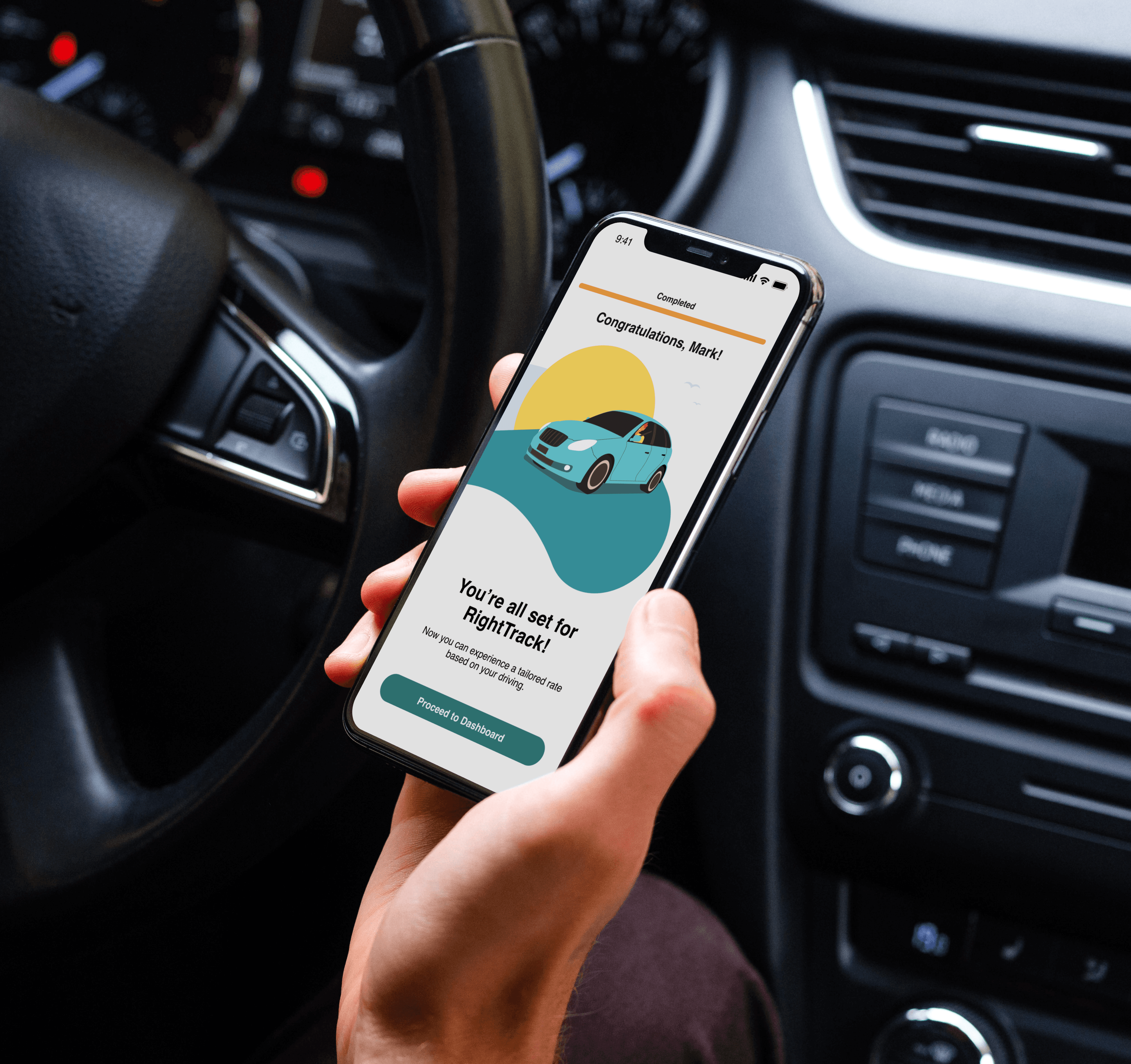 Easy, guided onboarding setup to activate customers' telematics savings. We'll have you on the road in just a few taps.